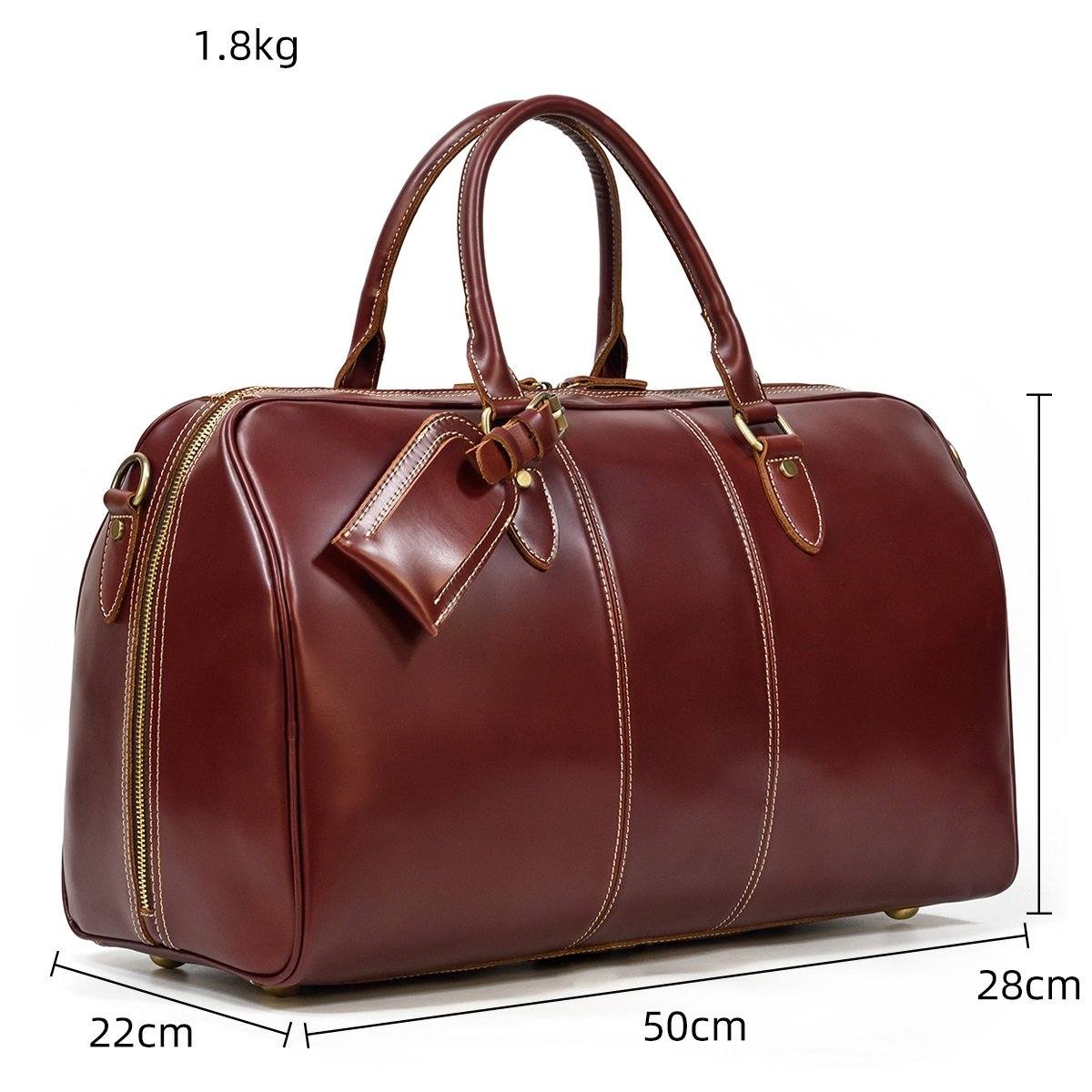 Made from full grain leather. this spacious (35L) and lightweight (1.8kg) leather travel bag will meet all your needs while adding a refined and subtle touch to your outfits and style.